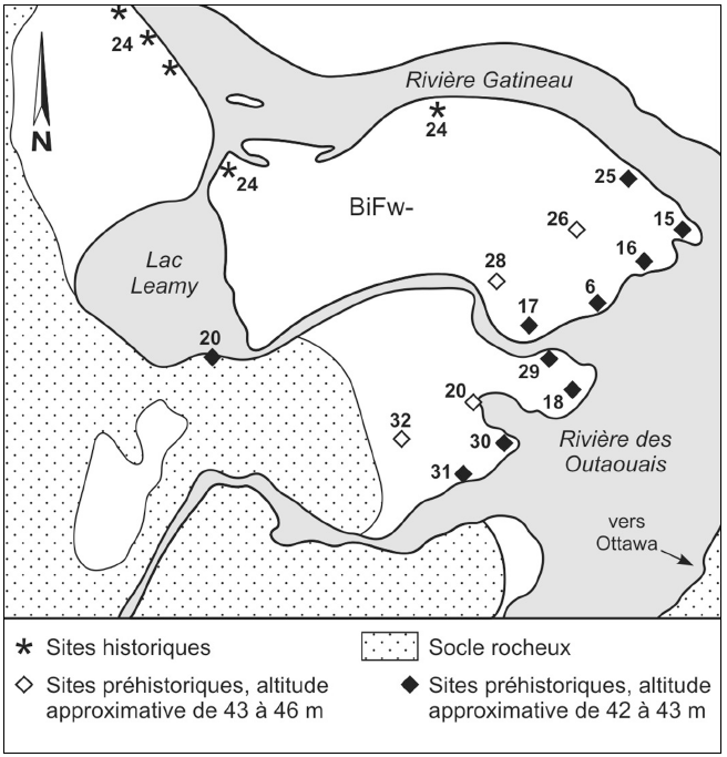 Schematic map showing the sites discovered in Leamy Lake Park (from Vaillancourt et al. 2008)